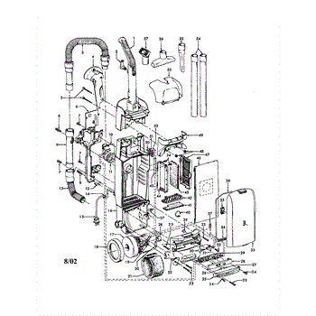 Parts for Hoover U5454-900: Motor Cover / Motor / Upper Handle / Hose Parts
