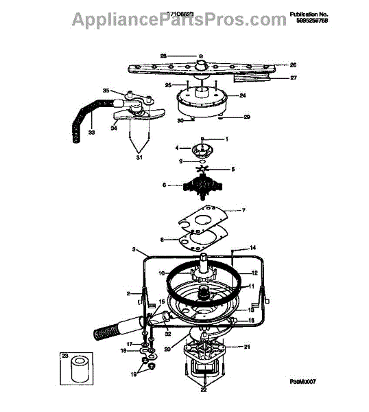 This wash impeller spins in the washer's circulation pump to move and spray wash water for effective cleaning. Replacing a worn or broken impeller restores proper water flow and helps your machine agitate and rinse clothes as designed. What it does: