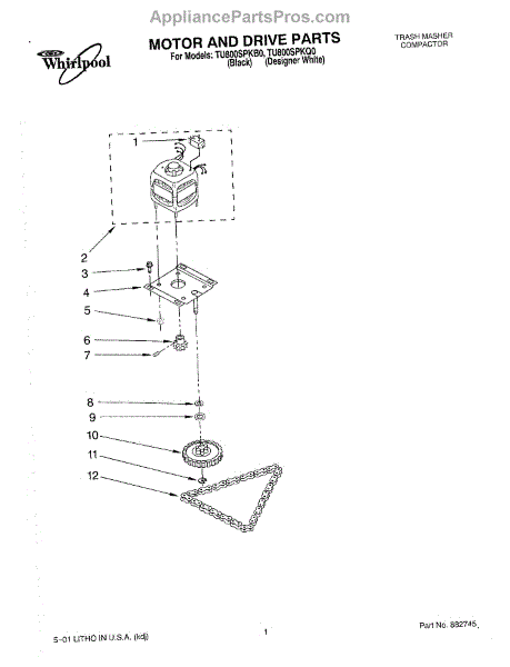 Parts for Whirlpool TU800SPKB0: 01 - Motor And Drive, Lit / Optional Parts