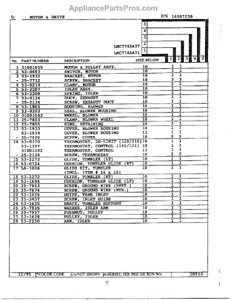 Right hand side. Used most Admiral, Crosley, Norge, and Magic Chef dryers. Includes glide and felt pad.