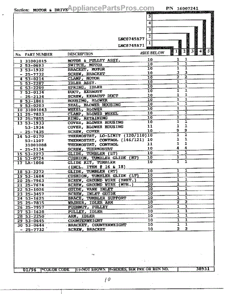 Parts for Maytag LNC8749A71: Motor And Drive Page 2 Parts
