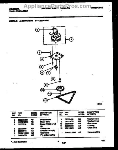 Parts for Frigidaire TC500AWW0: 03 - Motor And Drive Parts