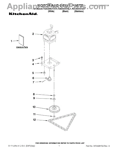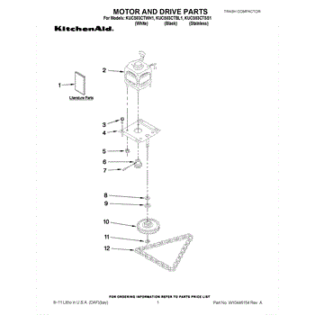 Parts for Kitchenaid KUCS03CTBL1: 01 - Motor And Drive Parts