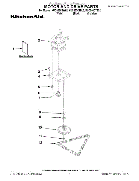 Parts for Kitchenaid KUCS03CTWH2: 01 - Motor And Drive Parts