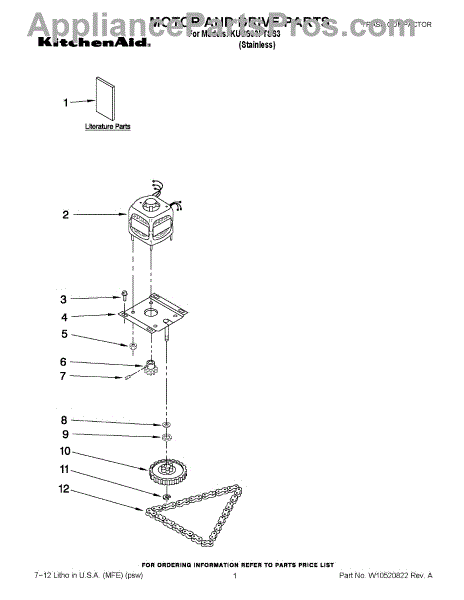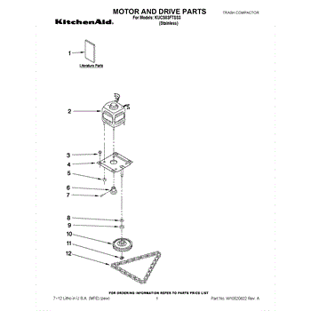 Parts for Kitchenaid KUCS03FTSS3: 01 - Motor And Drive Parts
