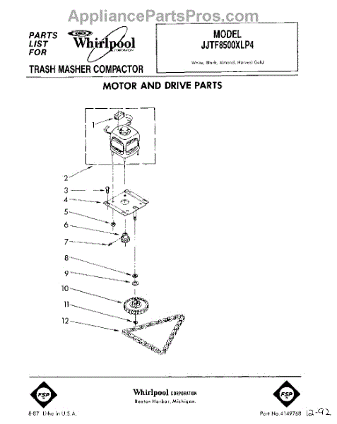 The Drive Gear Kit is an OEM replacement part for Whirlpool trash compactors. It is an essential component that powers the compaction mechanism. The drive gear kit consists of a series of gears, shafts, and other components that work together to transfer the motor's rotational force to the compaction ram.