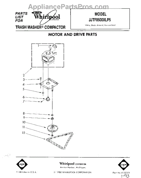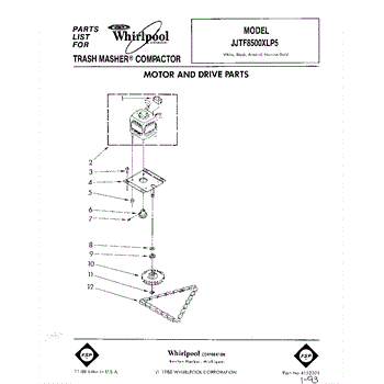 Parts for Whirlpool JJTF8500XLP5: 01 - Motor And Drive, Lit / Optional Parts