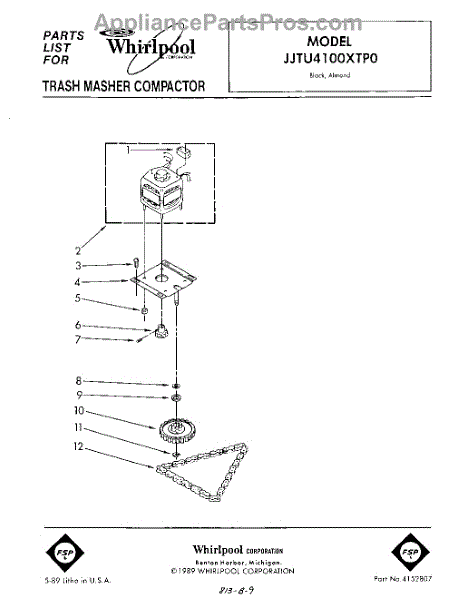 Parts for Whirlpool JJTU4100XTP0: 01 - Motor And Drive , Lit / Optional Parts