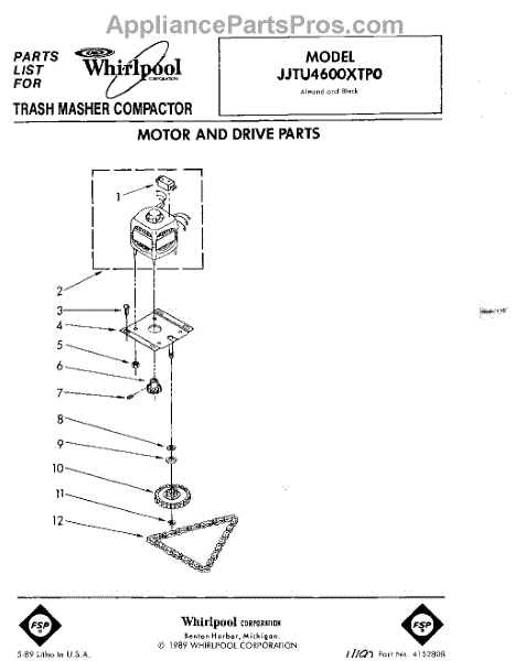 Parts for Whirlpool JJTU4600XTP0: 01 - Motor And Drive, Lit / Optional Parts