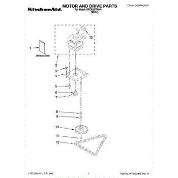 Parts for Kitchenaid KFCK03ITWH0: 01 - Motor And Drive Parts