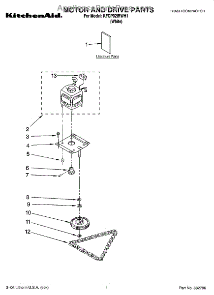 Parts for Kitchenaid KFCP02IRWH1: 01 - Motor And Drive Parts