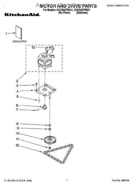 Parts for Kitchenaid KUCS02FRPA1: 01 - Motor And Drive Parts
