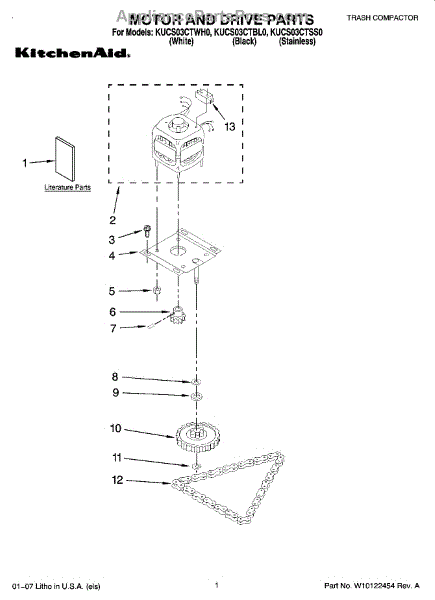 Parts for Kitchenaid KUCS03CTSS0: 01 - Motor And Drive Parts