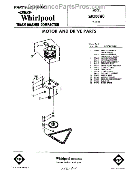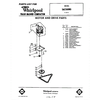 Parts for Whirlpool SAC100W0: 01 - Motor And Drive Parts