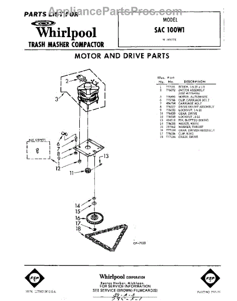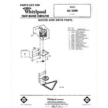 Parts for Whirlpool SAC100W1: 01 - Motor And Drive Parts
