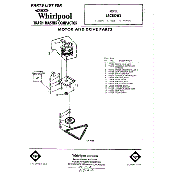 Parts for Whirlpool SAC250W3: 01 - Motor And Drive Parts
