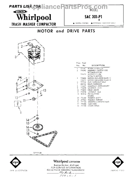 Parts for Whirlpool SAC301P1: 01 - Motor And Drive Parts