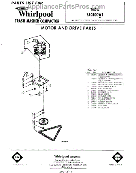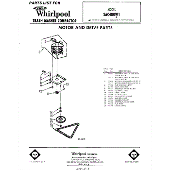 Parts for Whirlpool SAC400W1: 01 - Motor And Drive Parts