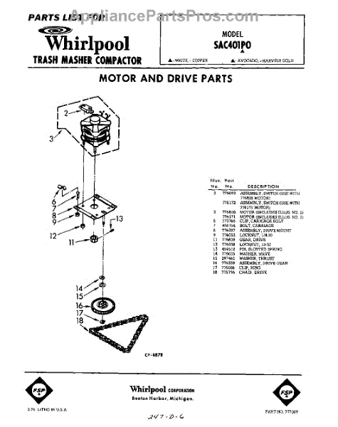 Parts for Whirlpool SAC401P0: 01 - Motor And Drive Parts