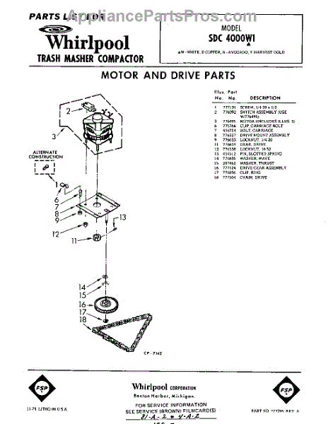 Parts for Whirlpool SDC4000W1: 01 - Motor And Drive Parts