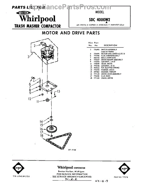 Parts for Whirlpool SDC4000W2: 01 - Motor And Drive Parts