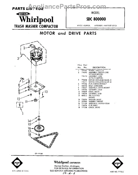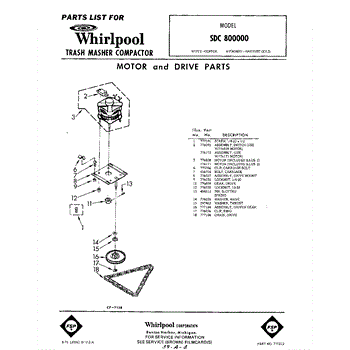 Parts for Whirlpool SDC800000: 01 - Motor And Drive Parts
