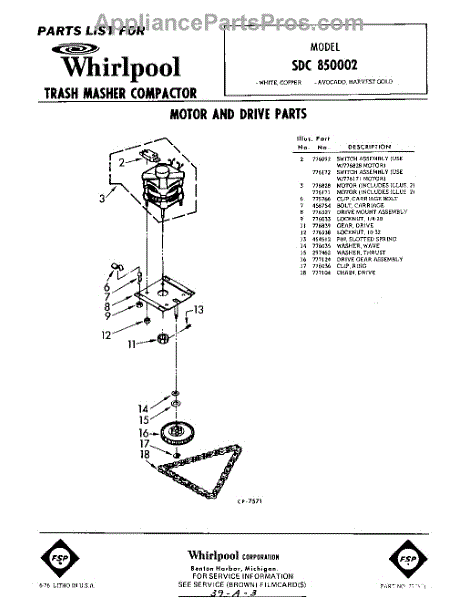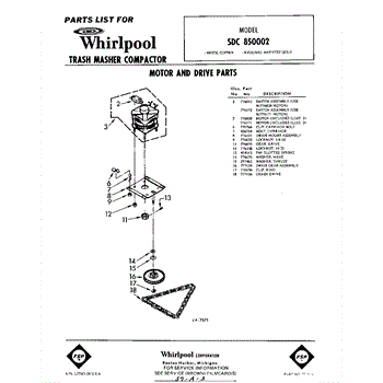 Parts for Whirlpool SDC850002: 01 - Motor And Drive Parts