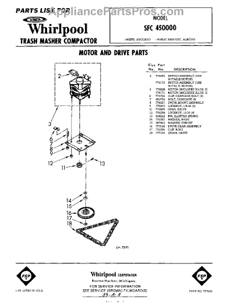 Parts for Whirlpool SFC450000: 01 - Motor And Drive Parts