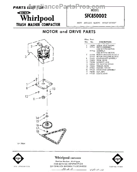 Parts for Whirlpool SFC850002: 01 - Motor And Drive Parts