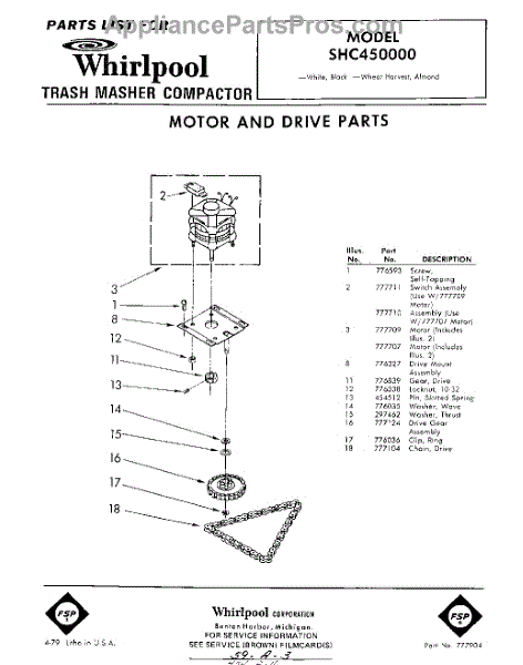 Parts for Whirlpool SHC450000: 01 - Motor And Drive Parts