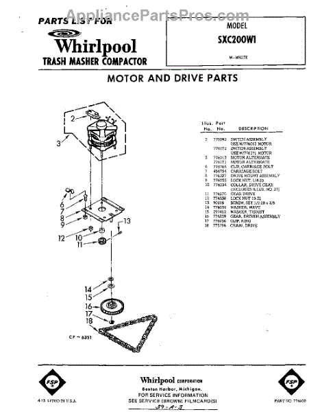Parts for Whirlpool SXC200W1: 01 - Motor And Drive Parts
