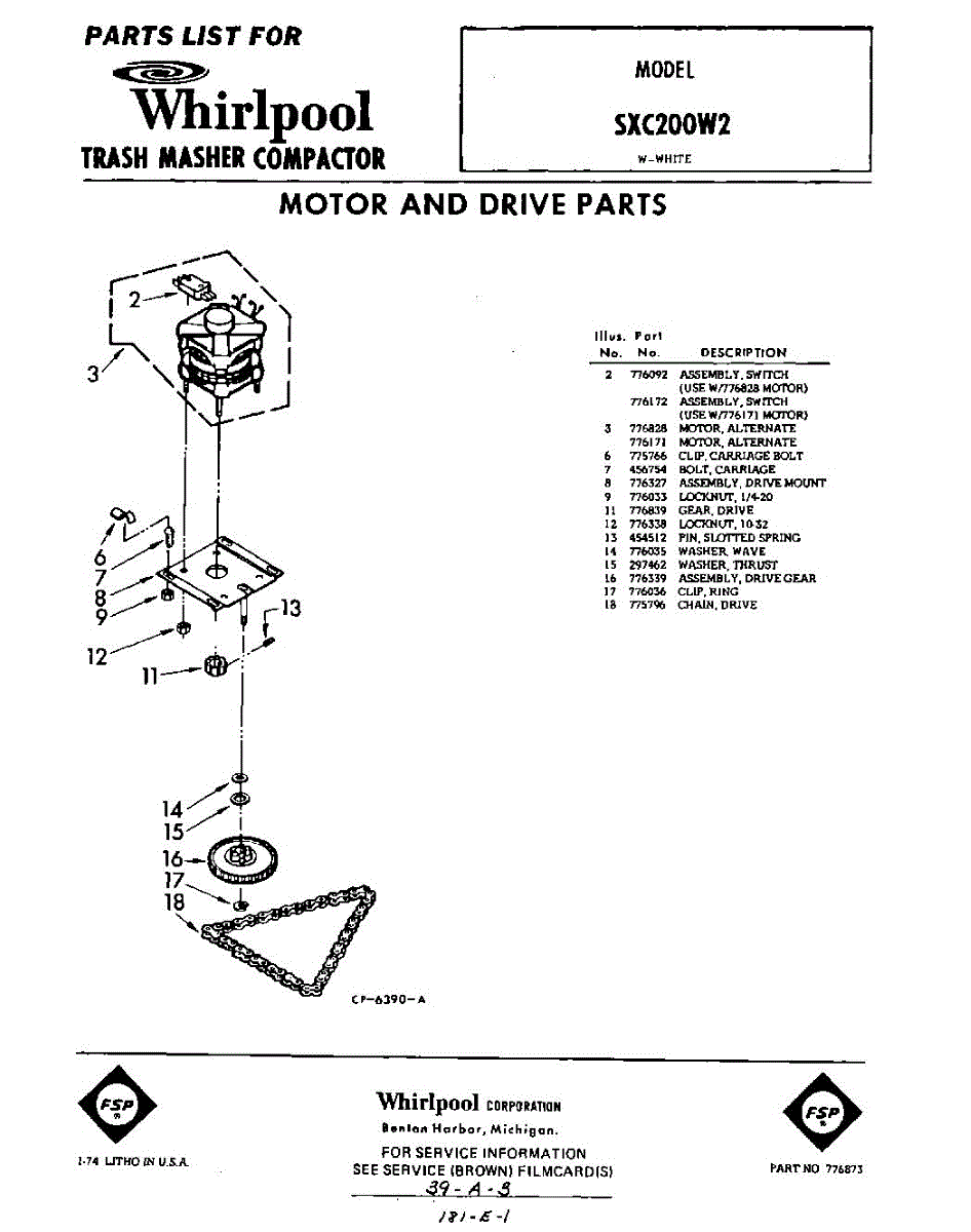 Parts for Whirlpool SXC200W2: 01 - Motor And Drive Parts