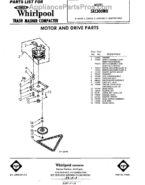 Parts for Whirlpool SXC300W0: 01 - Motor And Drive Parts