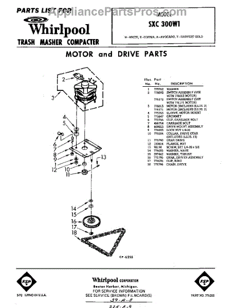 Parts for Whirlpool SXC300W1: 01 - Motor And Drive Parts