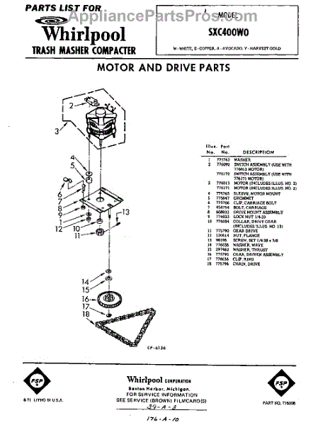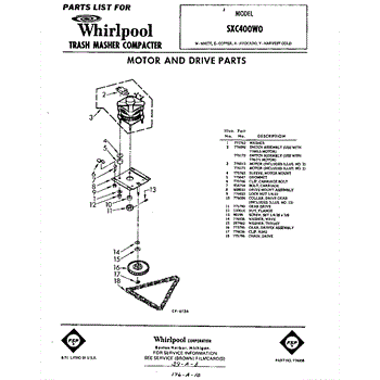 Parts for Whirlpool SXC400W0: 01 - Motor And Drive Parts