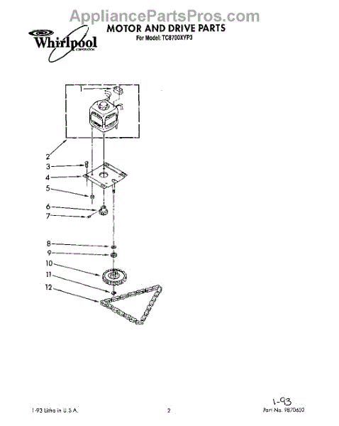 Parts for Whirlpool TC8700XYP3: 01 - Motor And Drive, Lit / Optional Parts