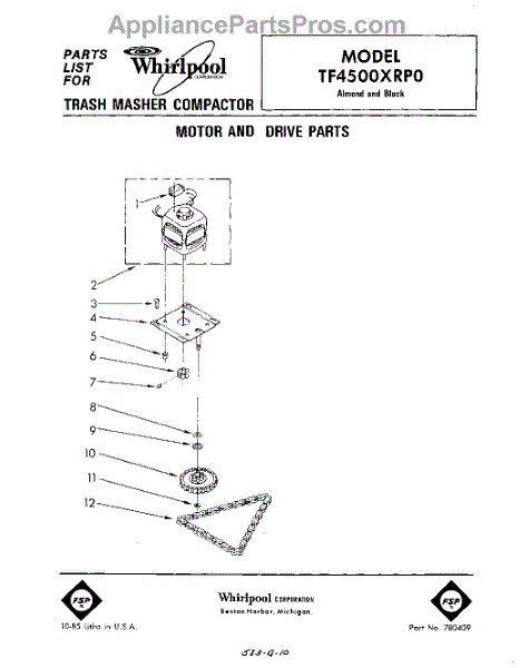 Parts for Whirlpool TF4500XRP0: 01 - Motor And Drive Parts