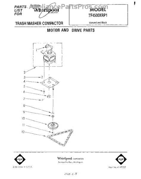 Parts for Whirlpool TF4500XRP1: 01 - Motor And Drive , Literature Parts