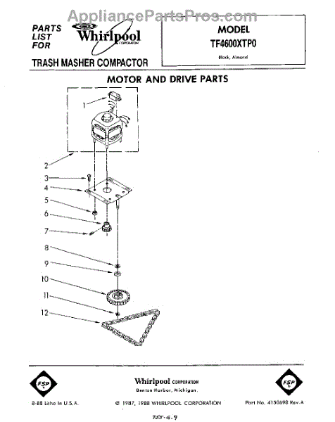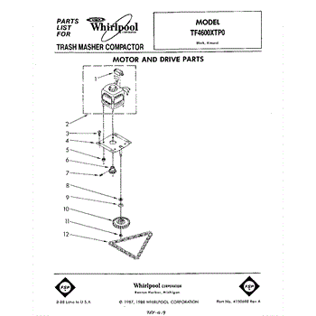 Parts for Whirlpool TF4600XTP0: 01 - Motor And Drive , Lit / Optional Parts
