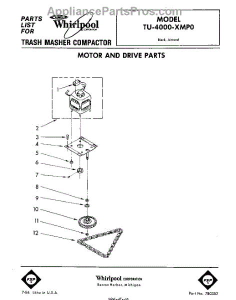 Parts for Whirlpool TU4000XMP0: 01 - Motor And Drive , Lit / Optional Parts