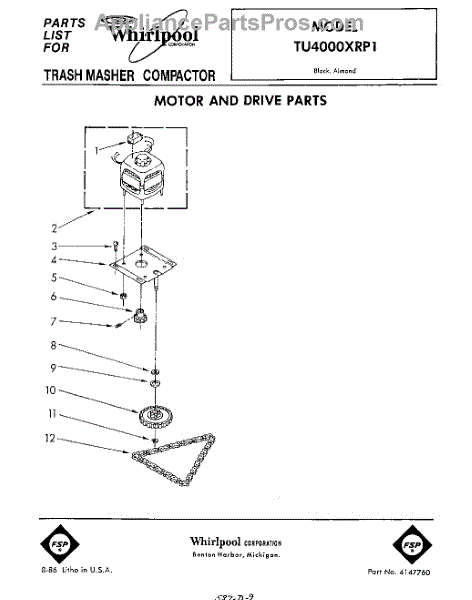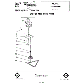 Parts for Whirlpool TU4000XRP1: 01 - Motor And Drive , Lit / Optional Parts