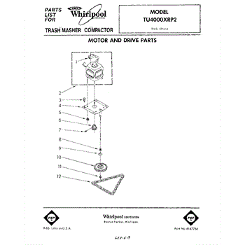 Parts for Whirlpool TU4000XRP2: 01 - Motor And Drive , Literature Parts