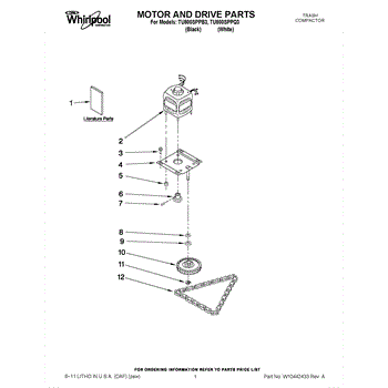 The Drive Gear Kit is an OEM replacement part for Whirlpool trash compactors. It is an essential component that powers the compaction mechanism. The drive gear kit consists of a series of gears, shafts, and other components that work together to transfer the motor's rotational force to the compaction ram.