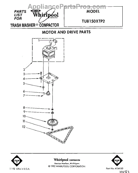 Parts for Whirlpool TU8150XTP2: 01 - Motor And Drive, Lit / Optional Parts