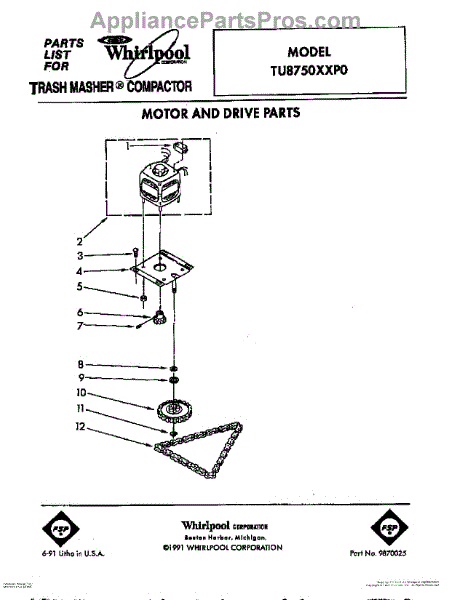 Parts for Whirlpool TU8750XXP0: 01 - Motor And Drive, Lit / Optional Parts