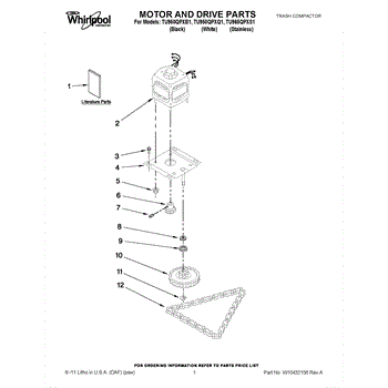 The Drive Gear Kit is an OEM replacement part for Whirlpool trash compactors. It is an essential component that powers the compaction mechanism. The drive gear kit consists of a series of gears, shafts, and other components that work together to transfer the motor's rotational force to the compaction ram.