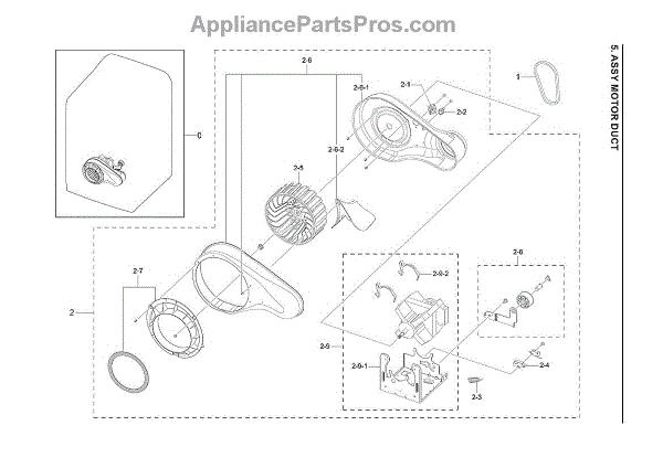Parts for Samsung DVE55A7700V/A3-00: Motor Duct Assy Parts