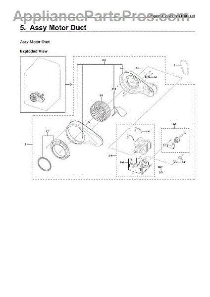Parts for Samsung DVG50R5400V/A3-00: Motor Duct Assy Parts