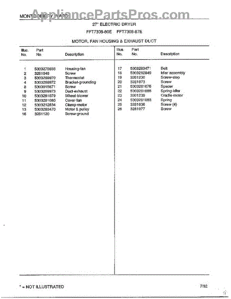 Parts for Frigidaire 7308-80E: Motor / Fan Housing / Exhaust Duct Page 2 Parts