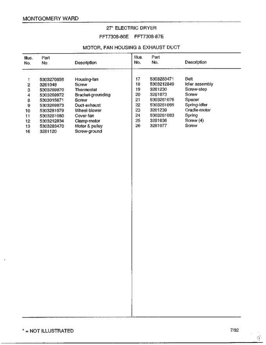 Parts for Frigidaire 7308-87E: Motor / Fan Housing / Exhaust Duct Page 2 Parts